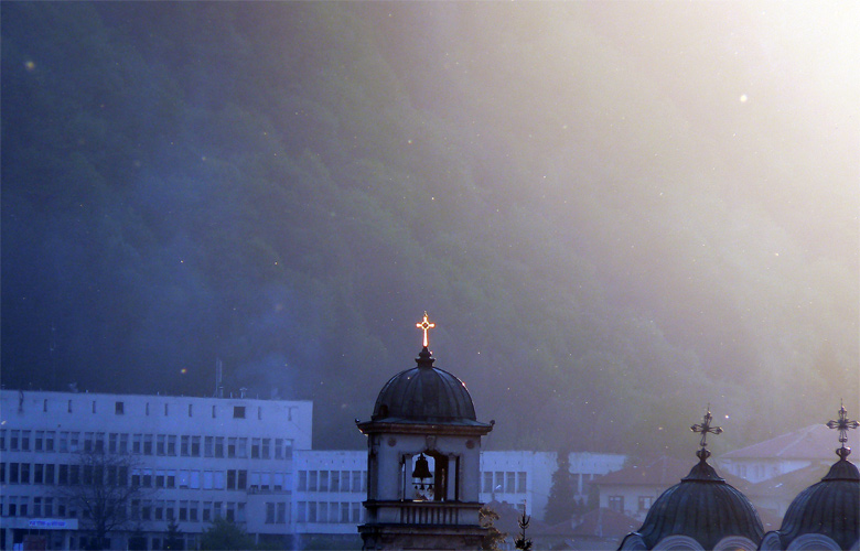 Този ефект със светещия кръст се вижда от моята къща само пролет при залез слънце