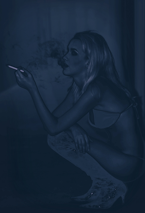 Voyeuristic observation of a left handed smoker in a dark corridor