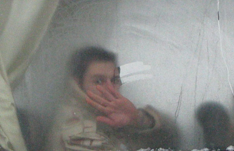 Български войник маха за сбогом преди да отпътува с контингента ни за Ирак.
