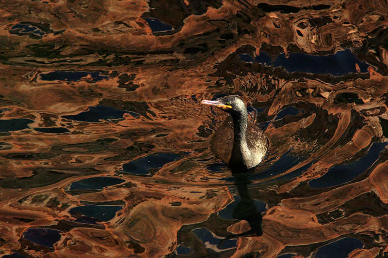 този качулат корморан НЕ плува в нефт