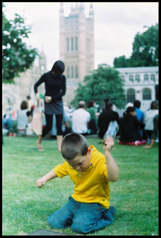 Миналата година.Известното френско колоездачно състезание стартира не в Париж,а в Лондон,Великобритания и беше посрещнато с голям интерес от лондончани,интерес,който този малчуган очевидно не споделя,поне в момента. :)