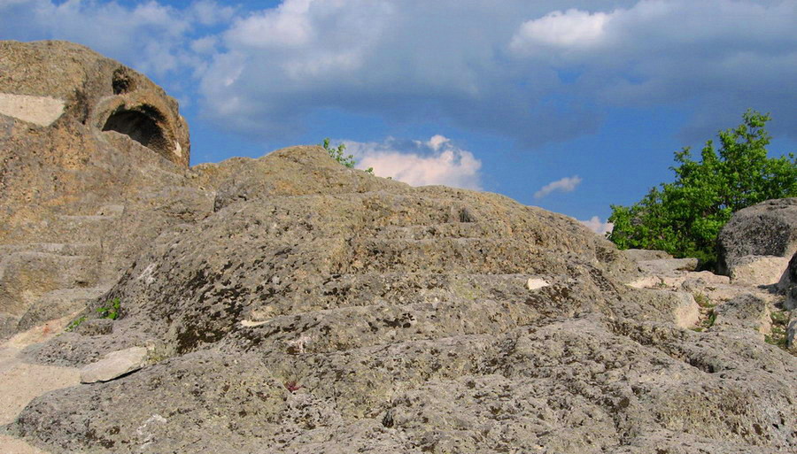 "Най-високото място в мегалита заема гроб с ориентация изток-запад (пътят на слънцето), вдълбан в масивна канара с формата на пресечена пирамида. До него водят запазени и до днес каменни стъпала. Предполага се, че този древен култов център е бил място за жертвоприношения към бога на Слънцето, както и средище за наблюдение на изгрева и залеза в определени дни от годината. Паметникът все още не е напълно проучен."