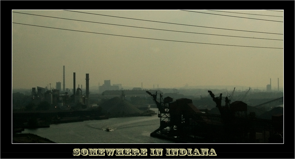 Някъде преди гр. Gary в северната част на щата Indiana, пътувайки от Chicago на югозапад. Стоманодобивът е главният отрасъл в този тъй индустриален район. Миризмата на въздуха напомня на тази край Нефтохим-Бургас. :]