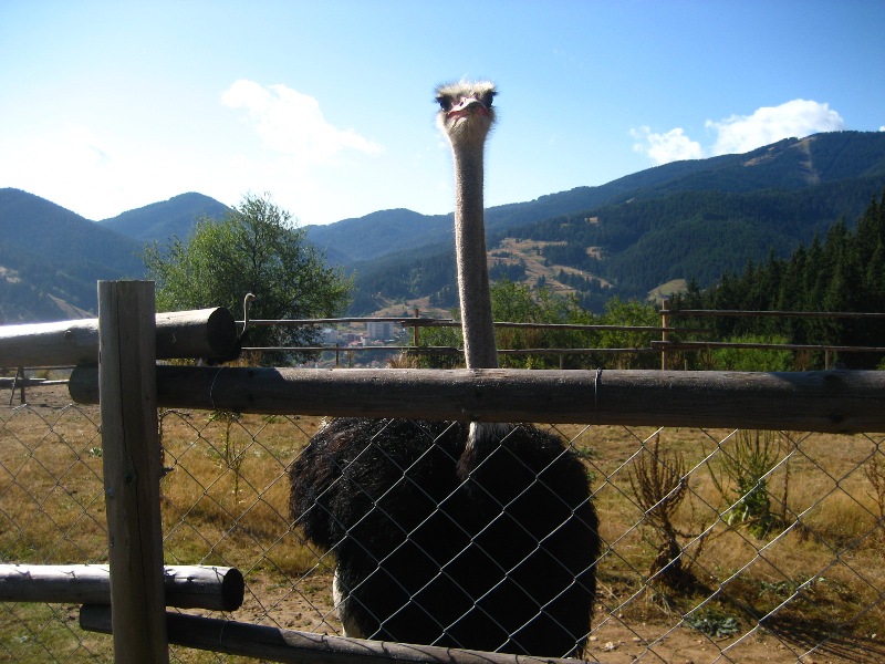 Представител на щраусите в една ферма в Чепеларе