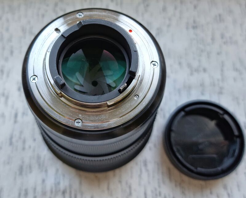 Продава се тази доказано добра 50-ка за никонската система в общо добро състояние и фунцкионираща отлично. Класически следи от употреба по корпуса и ринговете, някои протърквания по ъгълчетата. По задна леща има нещо като изключително повърхностно протриване (не драскотина), което се вижда под конкретен ъгъл и за мен не влияе отново по никакъв начин дори на затворени бленди. Изрично го тесвтах макар и с механичен адаптер дори а бленди като 16-18 и не виждам влияние (освен следите от прашинките по моята матрица). Прикачвам и снимка като доказателство. Заедно с 2 капачки и сенник.