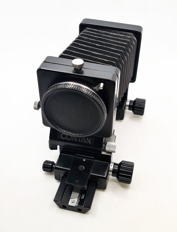 Extension bellows made for Contax/Yashica mount SLR cameras by Contax. Metal body available in black.
