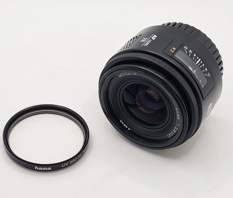 2: Minolta AF 28mm f2.8 Sony A-Mount / Minolta, в добро състояние, със задна капчка и филтър..