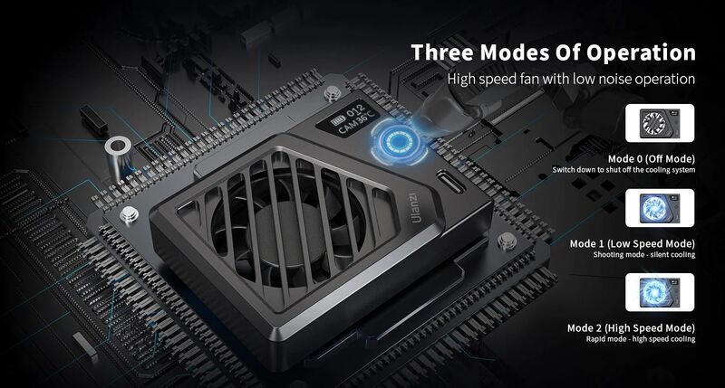 Охлаждащата система разполага с вградена батерия от 200 mAh, и Type-C вход с опция за свързване към външна батери за зареждане докато се използва. Показване в реално време на температурата и скоростта на вентилатора на 0,46-инчов OLED дисплей.