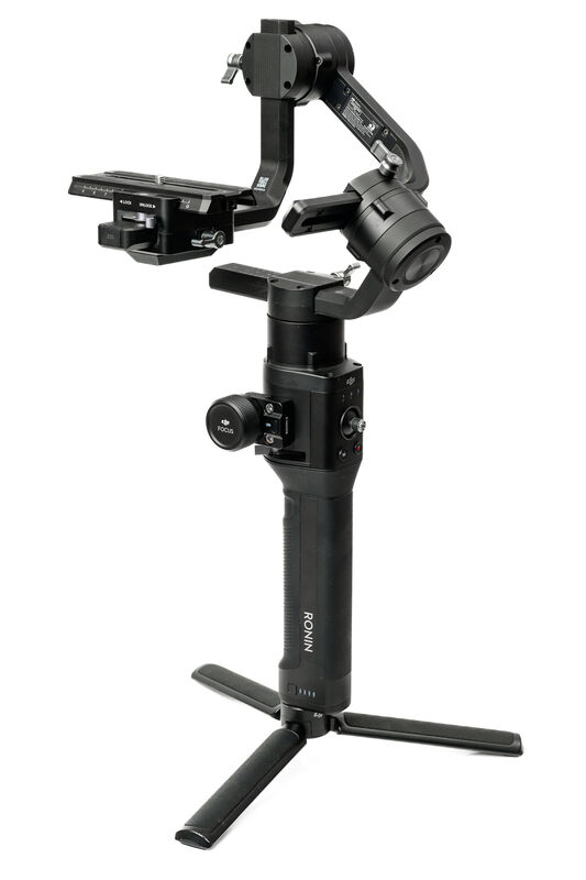 DJI Ronin S е стабилизираща система за видео за DSLR и безогледални камери с обща максимална товароносимост от 3.6 кг, която дава възможност за работа с една ръка. Гимбалът предлага 3-осева стабилизация, разполага с auto-tune настройка за лесна калибрация, има бутон за следене на фокуса и вградена батерия, която му осигурява работа до 12 часа.