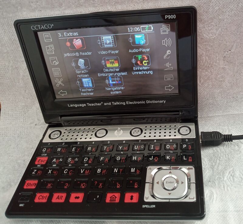 Устройството е предназначено за изучаване на чужд език. SD карта с курс по немски език.