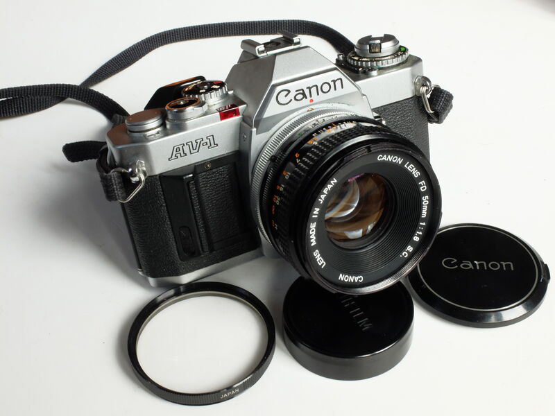 2."CANON AV1" с обектив "Canon-FD 1,8/50 mm" с капачка +оригинален ремък+ 2 филтъра.....180 лв
