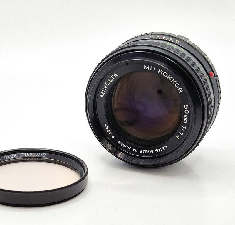 Minolta MD Rokkor 50mm 1:1.4 в отлично състояние със задна капачка и филтър B+W