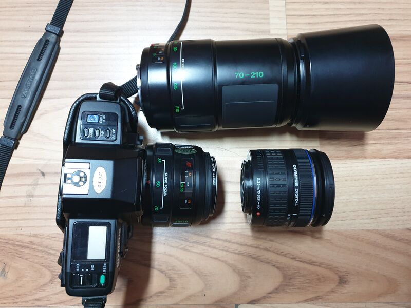 Продавам Olympus om77 AF комплект с обективи.