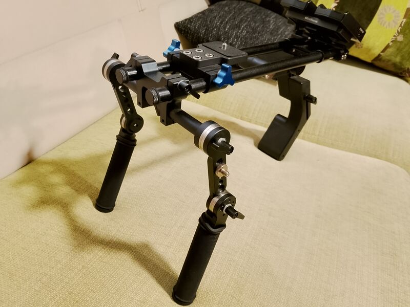 Shoulder rig - стабилизатор за рамо или гърди за видеозаснемане, сглобена само от оригинални части.