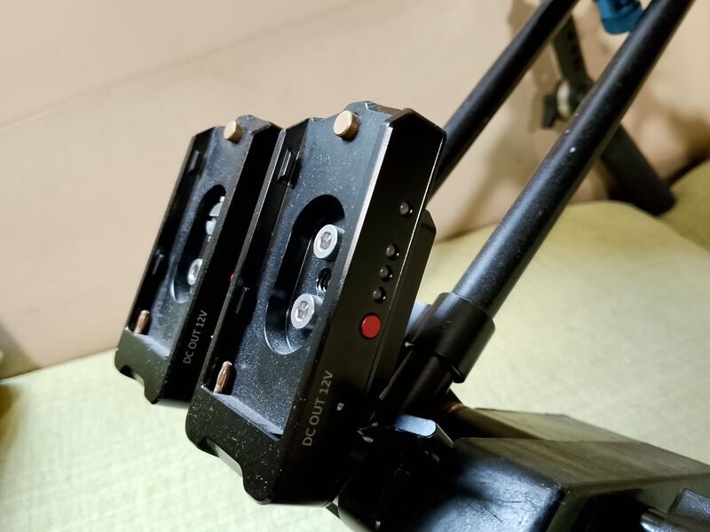 В задната част има 2 легла за NP F батерии, които да предават напред, чрез кабел ток за захранване на монитор.