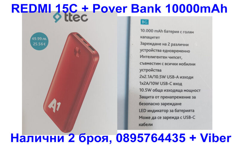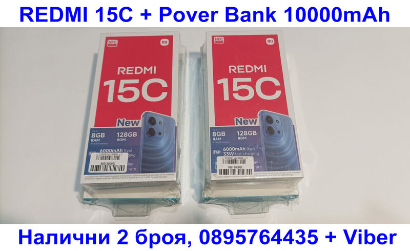Xiaomi Redmi 15C 128GB 4GB + 4GB RAM, НОВ Гаранция 2 г. + Pover bank