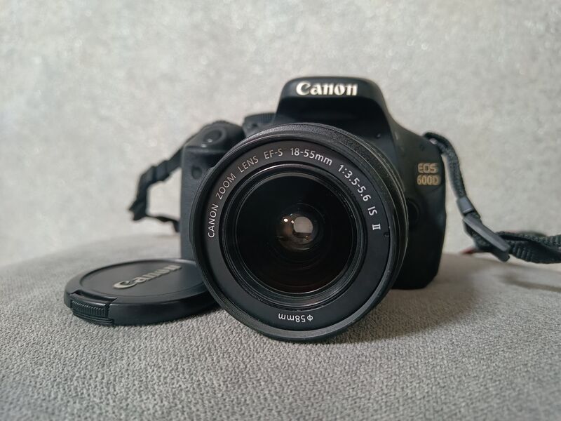 Продавам следния комплект: Canon 600D + 18-55mm IS + 50mm 1.8 II