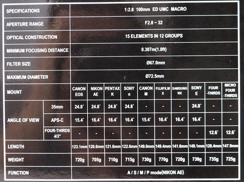 Samyang F2.8/100mm ED UMC MACRO Telephoto Macro Lens
