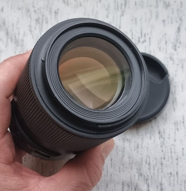 Продава се последната дслр генерация на този популярен макро обектив в общо отлично функционално и добро визуално състояние. Под челна леща има по-голяма групичка от малки прашинки, които отново не влияят и на много затворени бленди. Някои леки до нормални козметични следи от ползване по корпуса и малко по-видими такива по сенника. Много добро поведение на фокус, ринг за ръчен фокус и стабилизация. Остър още от 2.8. Заедно с 2 капачки и сенник.