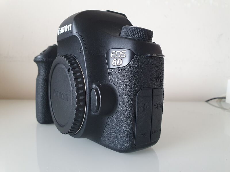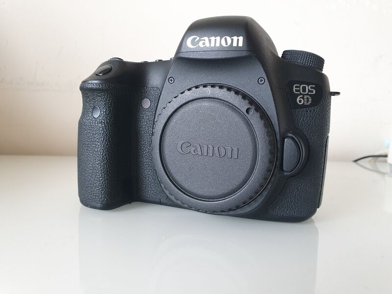 Продавам употребяван Canon 6D фул фрейм на 86 000 сработвания на затвора. Работи отлично. В комплекта влизат капачка, зарядно и батерия.