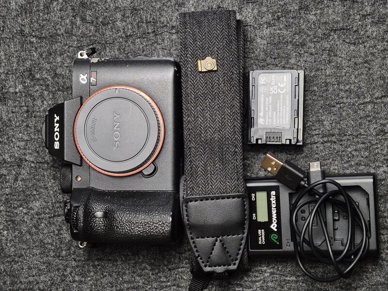 Идва с ремък. неоригинална батерия и двойно зарядно.