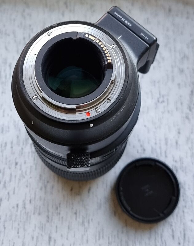 Продава се този много хубав и бърз варио обектив в общо отлично функционално и добро визуално състояние. Някои нормални до по-видими козметични и други следи от ползванe по корпуса и сенника - по-видими такива единствено по "яката" и петата за статив - има 2-3 зонички с ожулване на боята по тях. Запазена оптика с изключение на няколко прашинки под челна леща. Отлично поведение на рингове, фокус и стабилзиация. Заедно с 2 капачки и сенник.