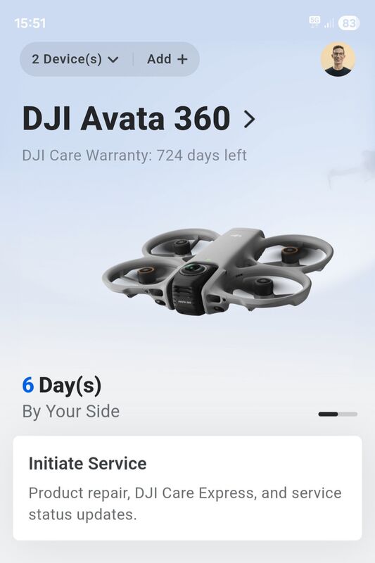 Закупен на 14 април и активиран ден по-късно, с DJI Care Refresh за 2 години.