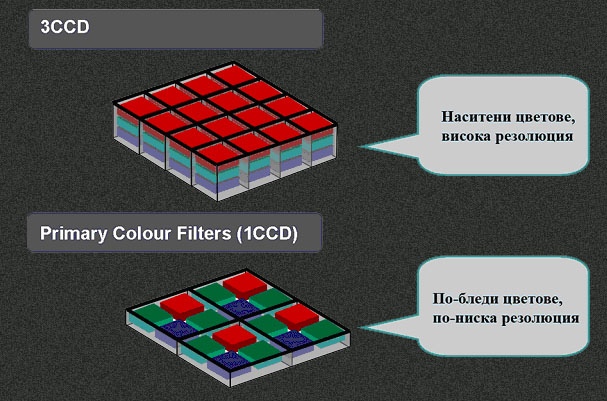идва по-доброто качество на 3CCD системата.